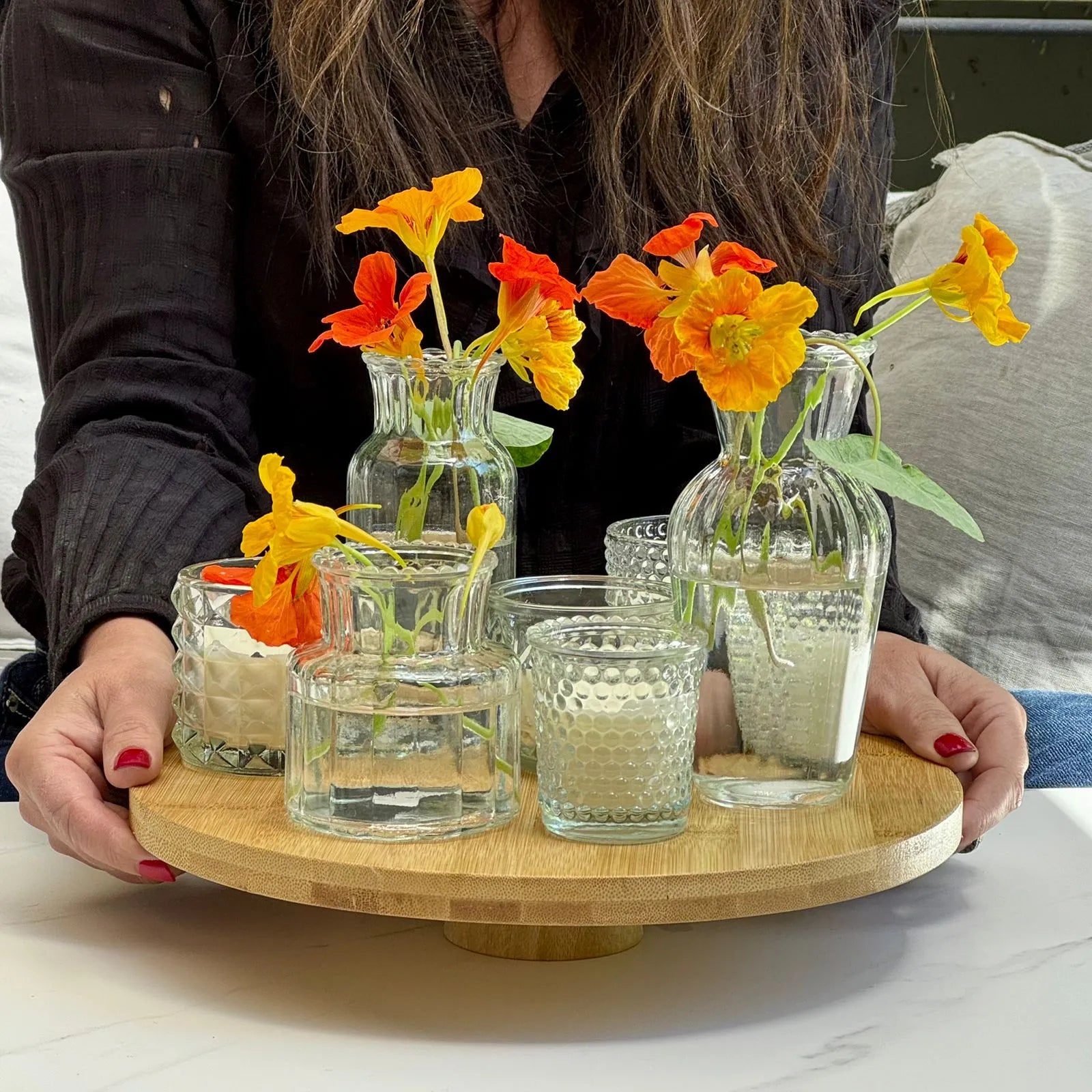 Decora tus espacios con este lindo Tortero madera bajo L. Su diseño bajo y estable resaltará la belleza de tus floreritos o velas, aportando un toque natural y cálido a tu mesa. Perfecto para centro de mesa o el espacio de quieras decorar, también lo puedes usar para comidas como tortas o aperitivos. Lo puedes encontrar en un tamaño más pequeño perfecto para crear una linda composición. Un accesorio funcional y decorativo que convierte cualquier momento en una presentación especial.