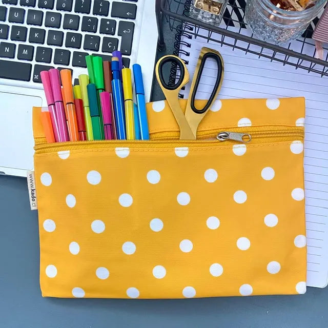 Organiza todas tus cosas en este lindo Estuche plano hule. Su forma y porte lo hacen ideal para guardar todos tus lápices y útiles escolares. También puede ser muy práctico para guardar tus documentos y llevarlo a un viaje. Está en varios diseños, revísalos en el selector y elige la que más te guste.