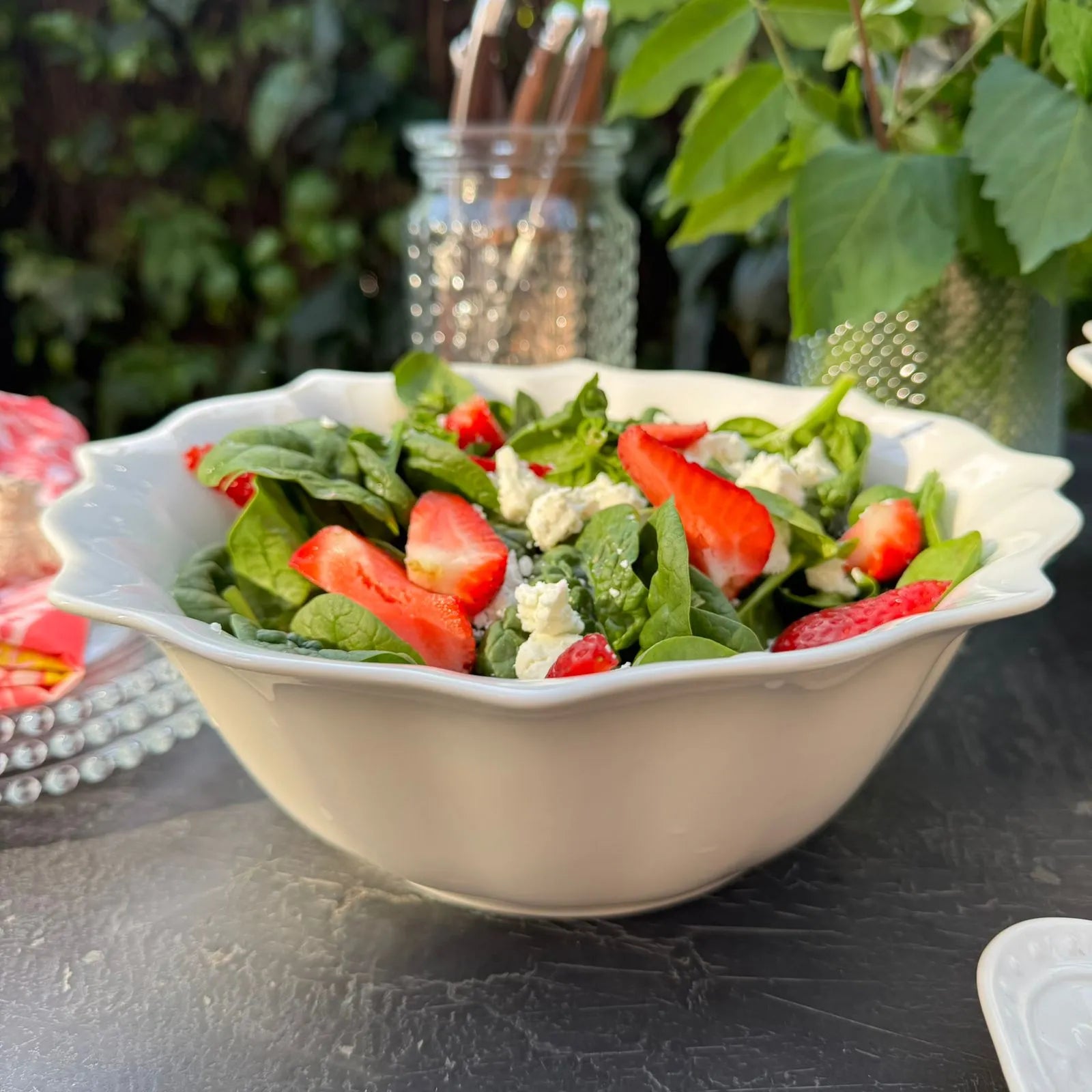 Dale un toque especial a tus comidas con nuestra Fuente redonda flor puntas M, una pieza delicadamente diseñada con forma de flor y detalles que la hacen única. Su borde con suaves puntas imita los pétalos de una flor, creando un diseño armonioso y elegante que realza cualquier presentación. Es perfecta para servir distintos tipos de ensaladas, frutas o postres adaptándose a diferentes momentos y necesidades. Su color blanco combina fácilmente con cualquier estilo de vajilla, haciéndola perfecta para el uso diario o para ocasiones especiales. Puedes encontrarla en un porte más grande y combinarlas para una mesa de en sueños.