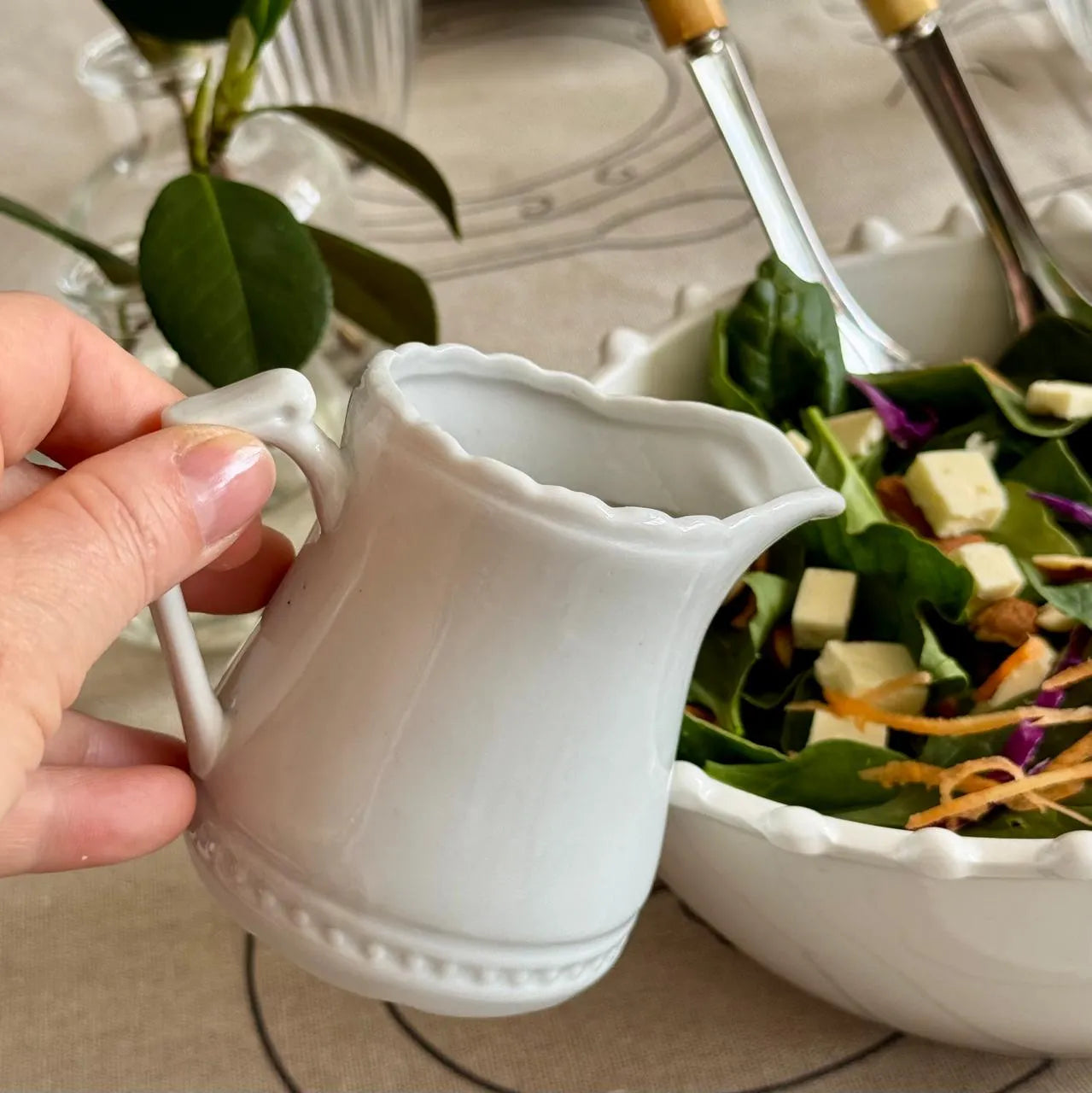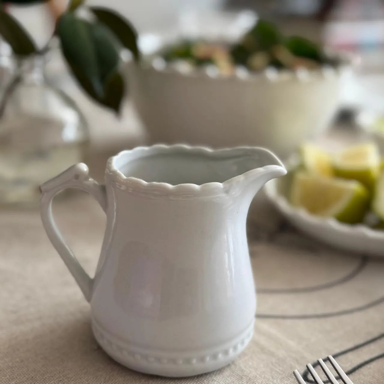 Sorpréndete con nuestro lindo Jarrito cerámica blanco S. Este encantador jarrito de cerámica blanco es la solución ideal para servir aderezos, salsas, leche o lo que tú quieras. Su tamaño compacto y diseño sutil lo hacen perfecto para dale un toque especial a tus comidas. Es un jarrito muy versátil que se adapta a cualquier estilo de vajilla. Además, su diseño cómodo y funcional te permite verter con facilidad sin complicaciones.