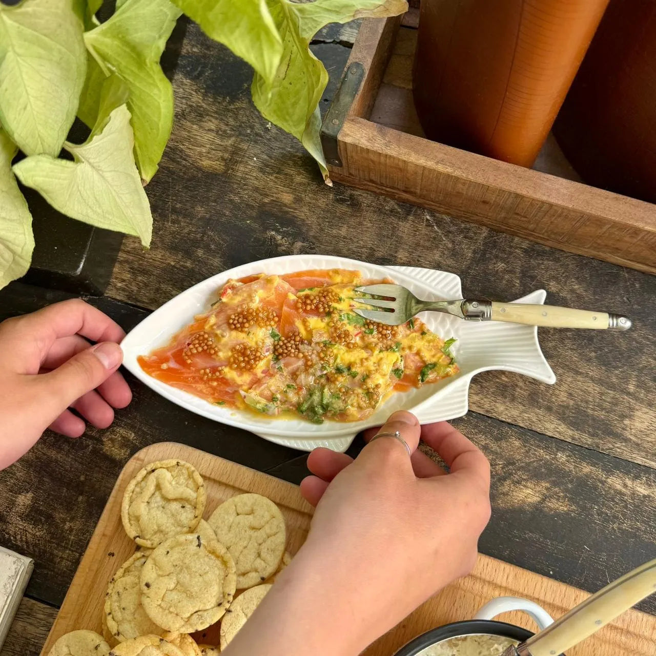 Pon tu mesa preciosa con esta linda Fuente pescado plano escamas S. Su forma de pescado le dará a tu mesa un toque muy original. Su porte es ideal para aperitivos, tiradito o cualquier pescado. Combínalo con nuestros bowls de pescados para un lindo y original regalo.