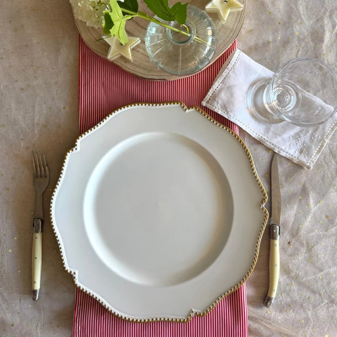 Plato base borde puntos dorados
