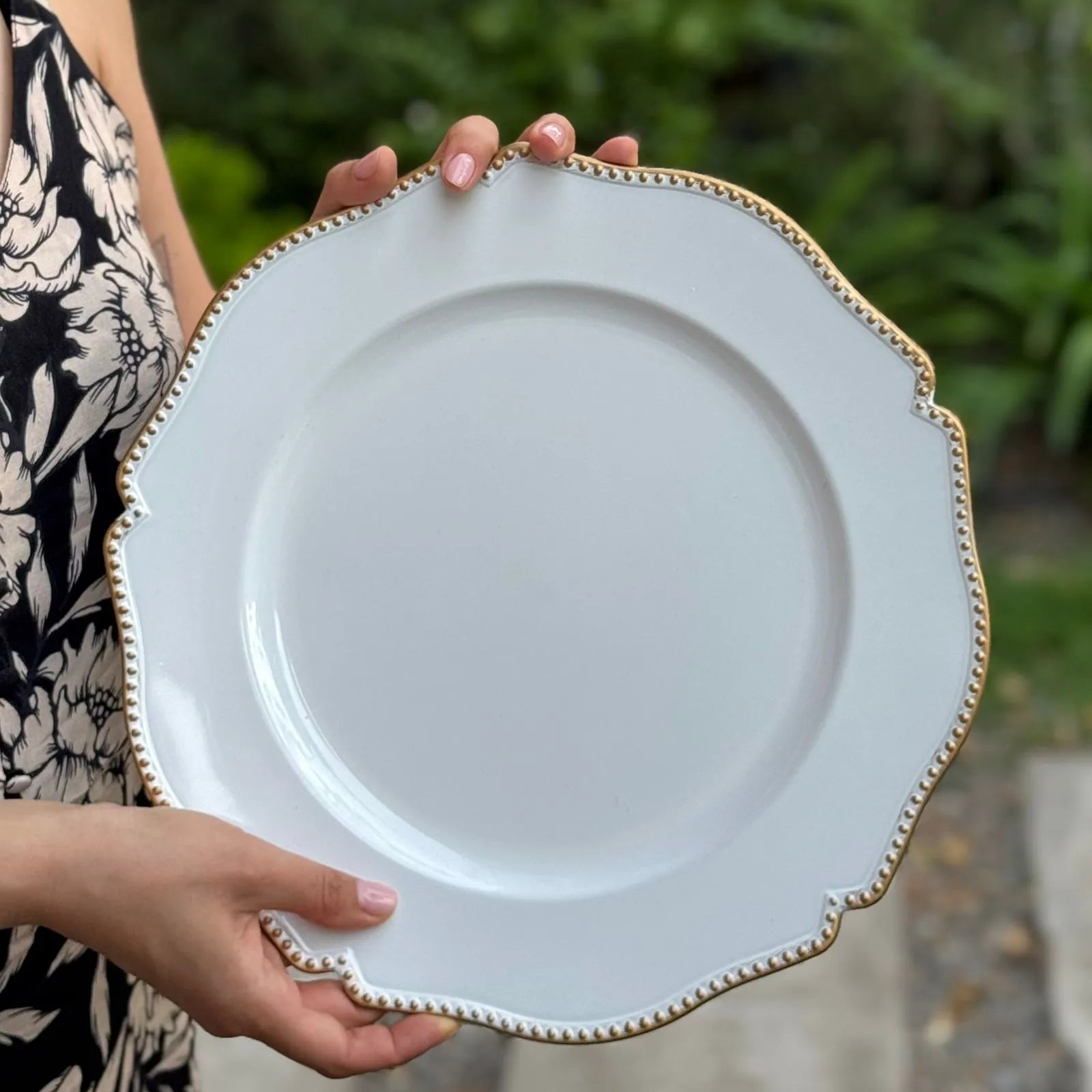 • Color: Blanco con puntos dorados en el borde.