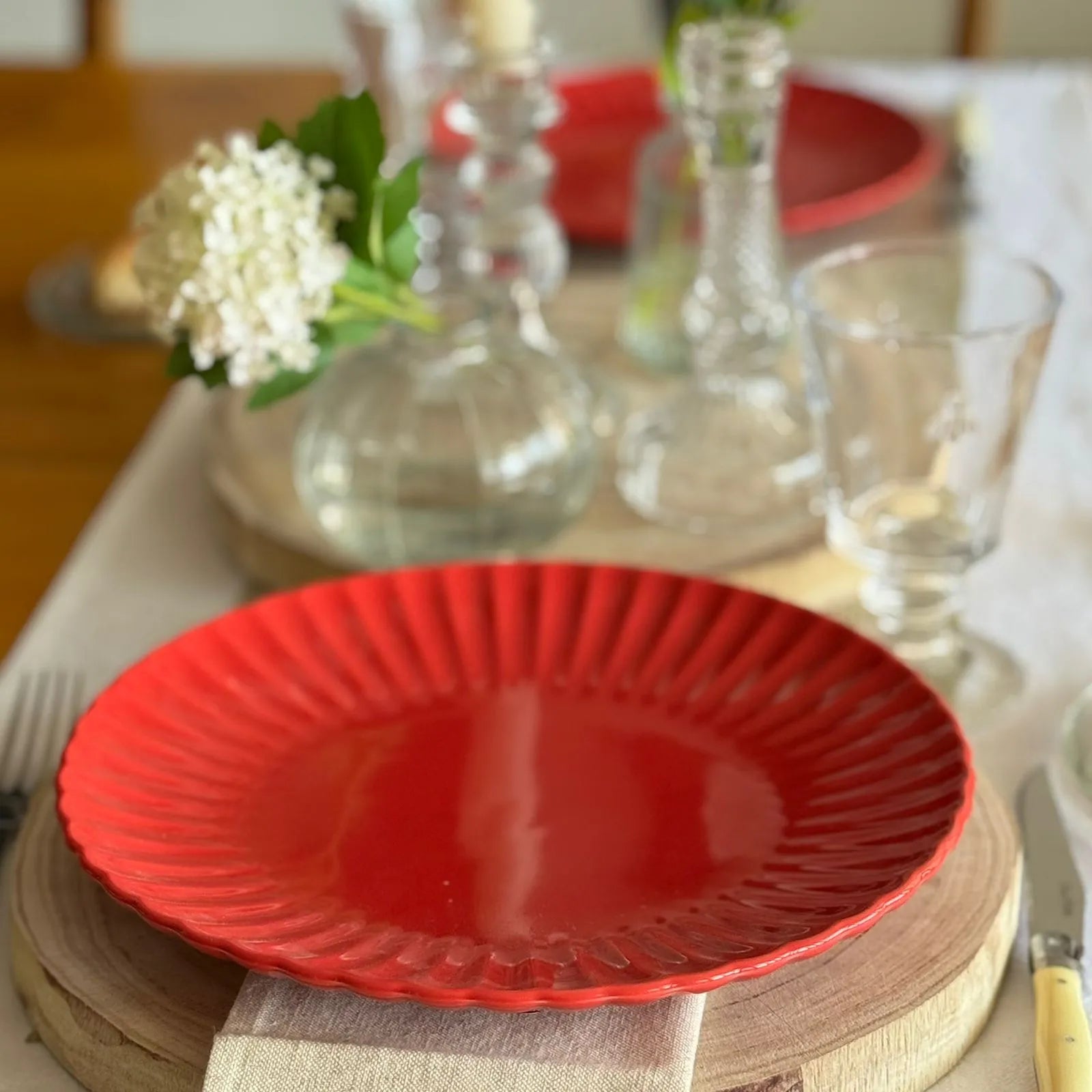 Pon tu mesa preciosa con nuestro lindo Plato L plano diseño flor rojo. Este plato de cerámica  destaca por su delicado diseño de rayitas decorativas alrededor del borde y su color es ideal para celebraciones navideñas. Combínalo con nuestro plato base borde dorado y logra una mesa increíble para estas fiestas. Debido a su porte es ideal para plato principal, sandwiches o lo que tú quieras.