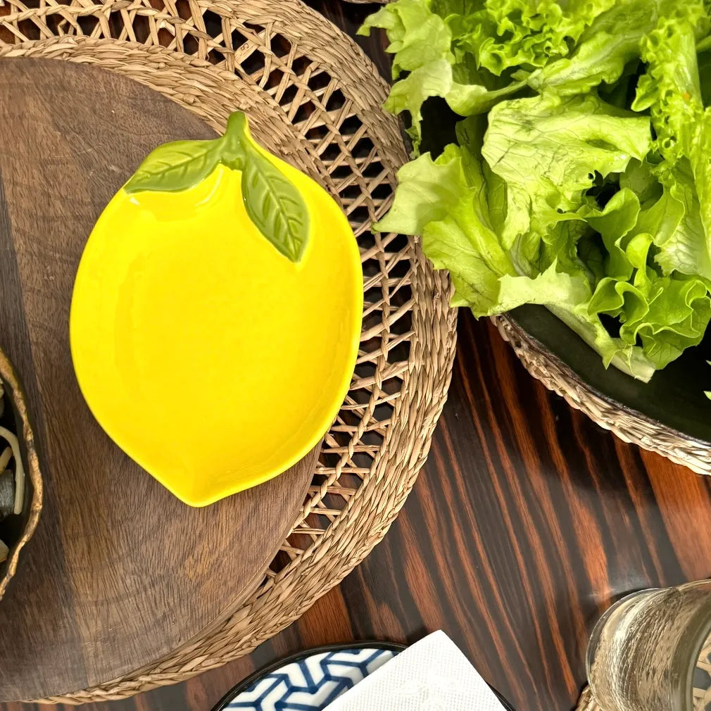 Dale un toque fresco y original a tu mesa con este encantador Plato pintado limón S. Su diseño detallado y color vibrante le darán protagonismo a todas tus preparaciones, convirtiéndolo en una pieza ideal para servir rodajas de limón, aperitivos o simplemente para decorar tu cocina. Elaborado de cerámica, este plato combina estilo y funcionalidad, perfecto para quienes aman los detalles únicos y alegres.