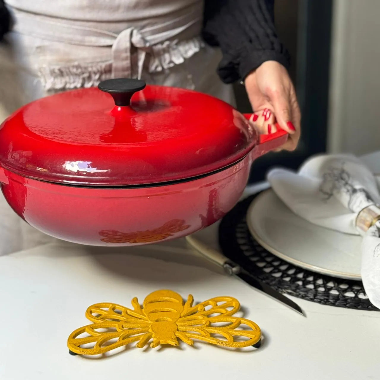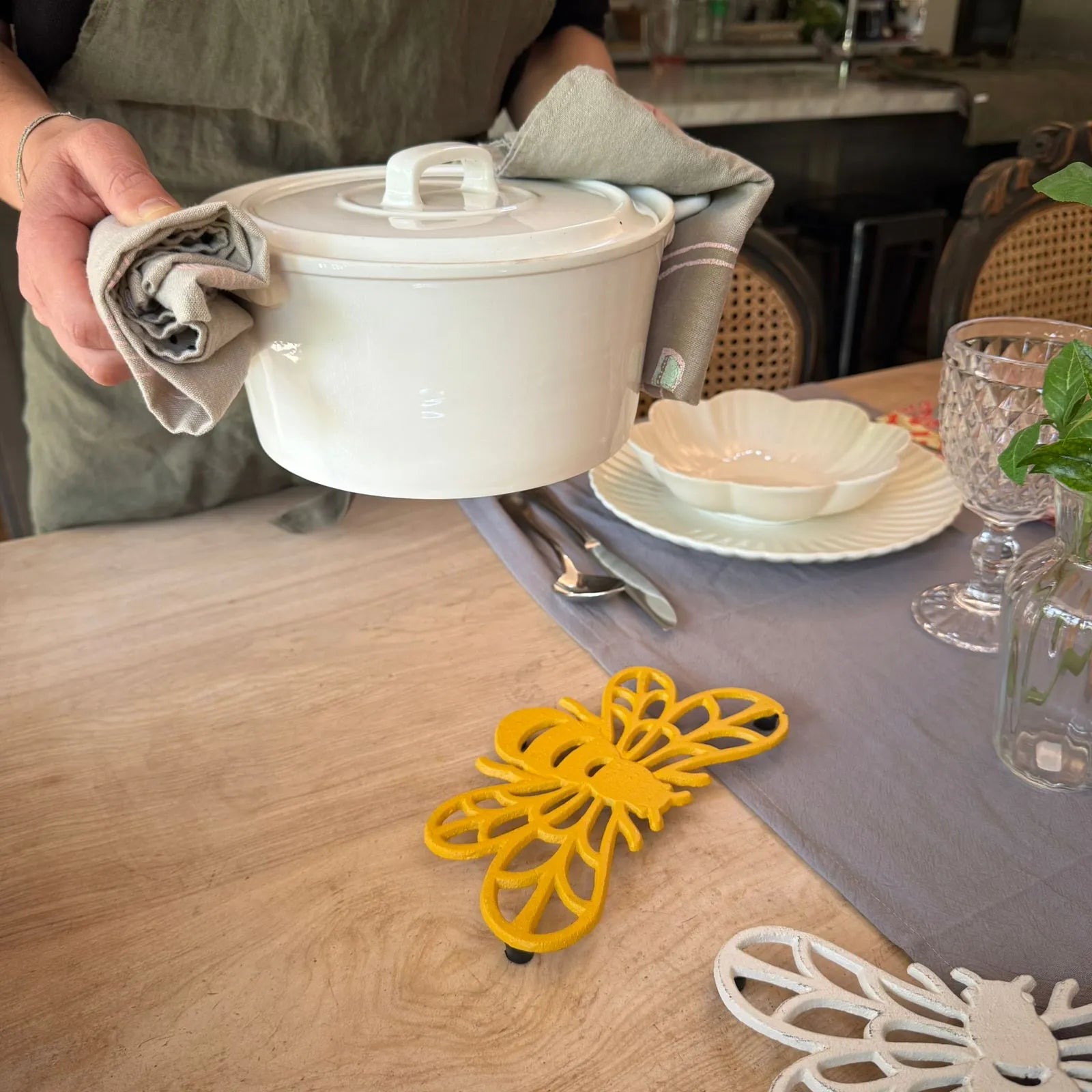 Dale un toque único y encantador a tu cocina con este Posa olla de fierro abeja. Fabricado en metal resistente, protege tus superficies del calor mientras añade un detalle decorativo lleno de personalidad. Su diseño inspirado en una abeja combina estilo y funcionalidad, convirtiéndolo en un accesorio ideal para el uso diario o para lucir una mesa bien presentada. Disponible en dos colores, revísalos en el selector y escoge el que más te guste.