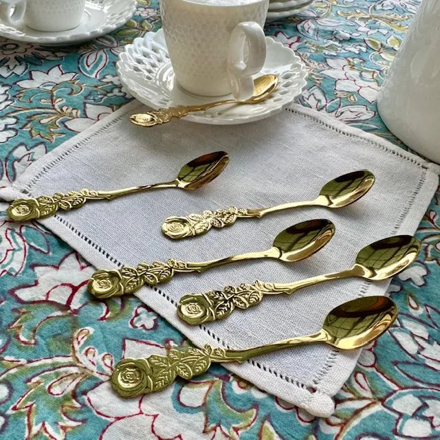 Agrega un toque de encanto y delicadeza a tus momentos favoritos con este lindo Set 6 cucharitas XS mango flor. Cada pieza destaca por sus terminaciones, un detalle delicado que transforman lo cotidiano en especial. Fabricadas de metal con un acabado dorado, combinando estilo y funcionalidad, ideales para acompañar postres, café o infusiones. Su tamaño pequeño las hacen perfectas para darle un toque a cualquier ocasión.