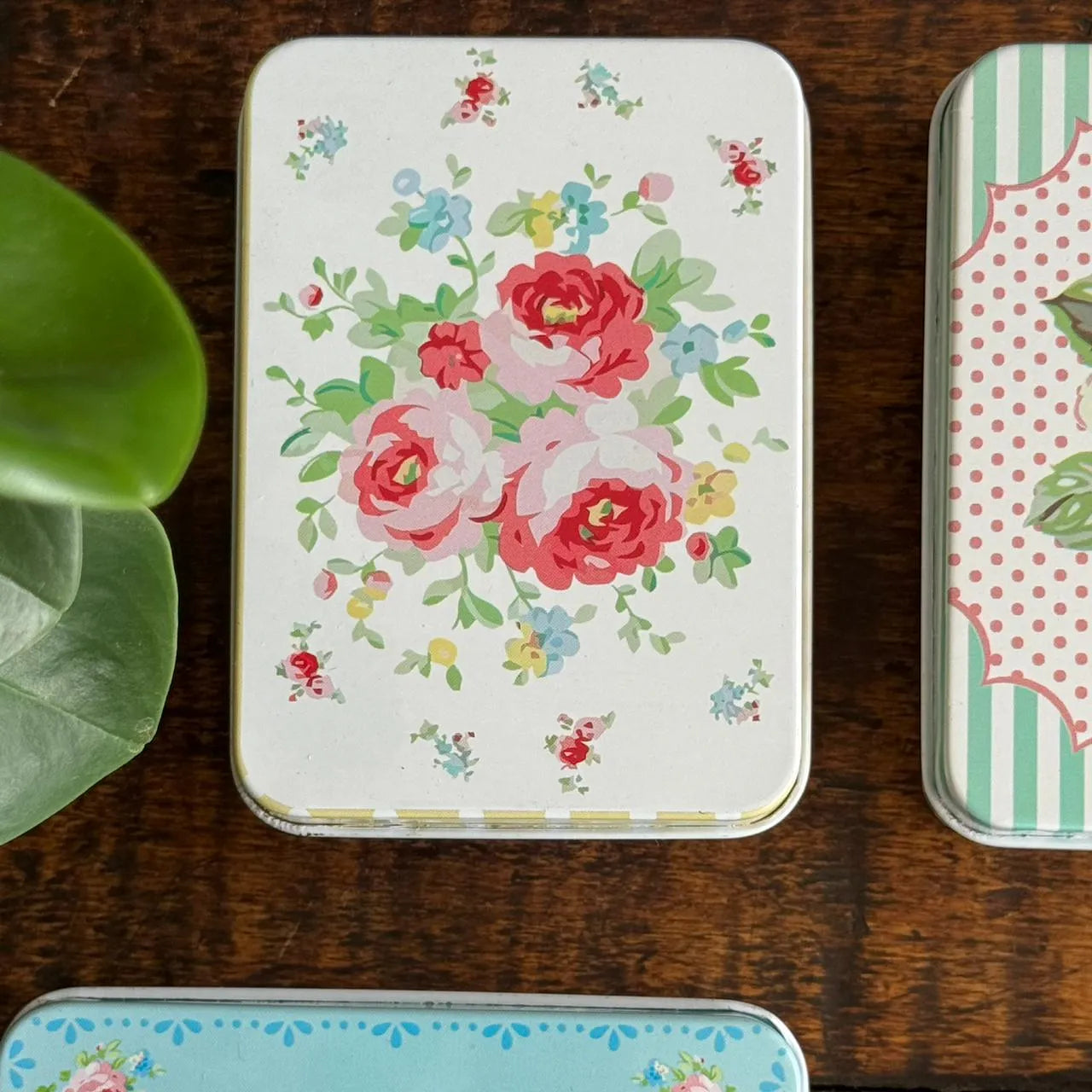 Organiza lo que necesites con nuestra Caja rectangular S diseño. Su formato compacto la convierte en el complemento perfecto para organizar pequeños objetos como accesorios, joyas, monedas, artículos personales o incluso medicamentos, manteniéndolos siempre protegidos y a mano. Su material metálico brinda resistencia y durabilidad, ideal para el uso diario. Disponible en varios diseños, revísalos en el selector y escoge el que más te guste.