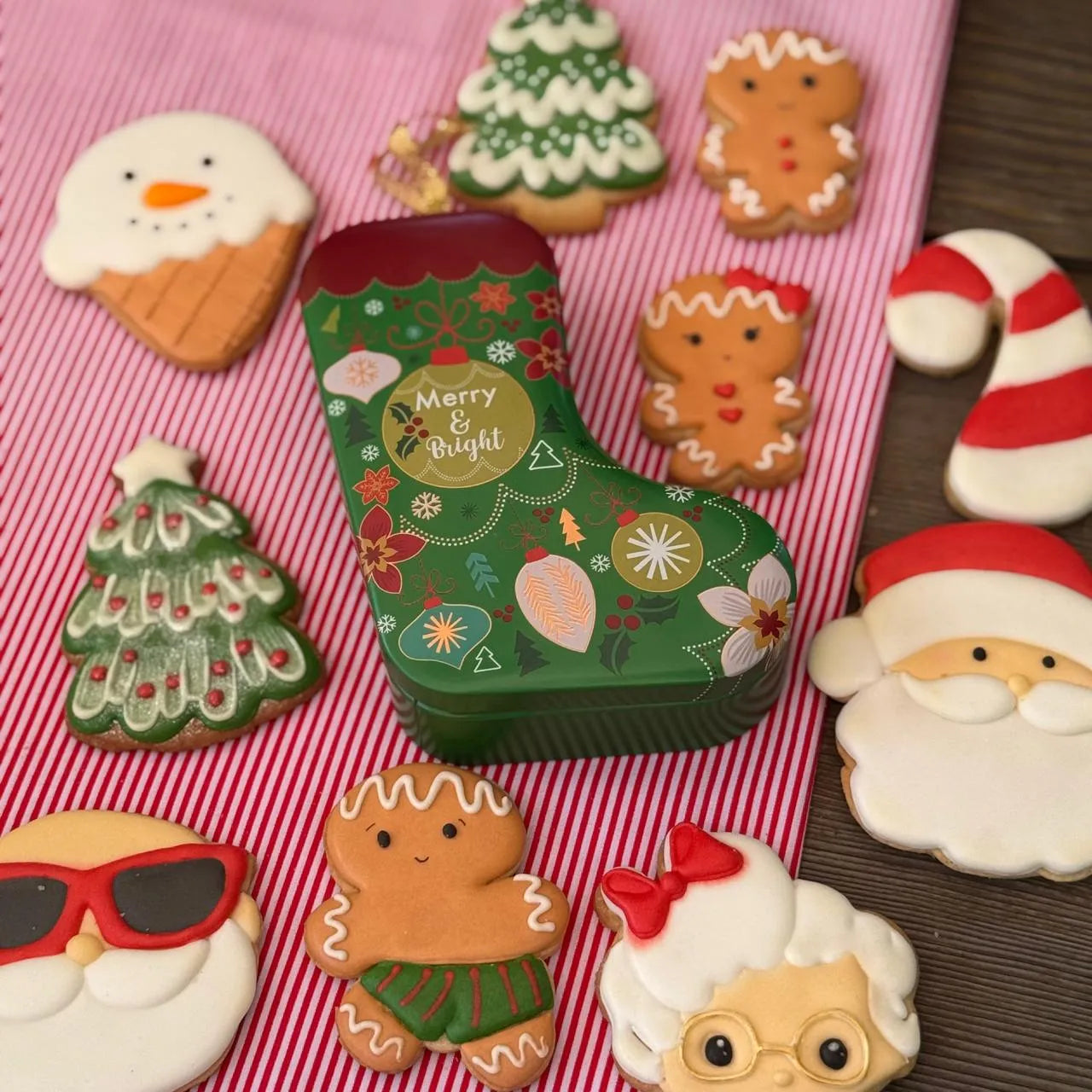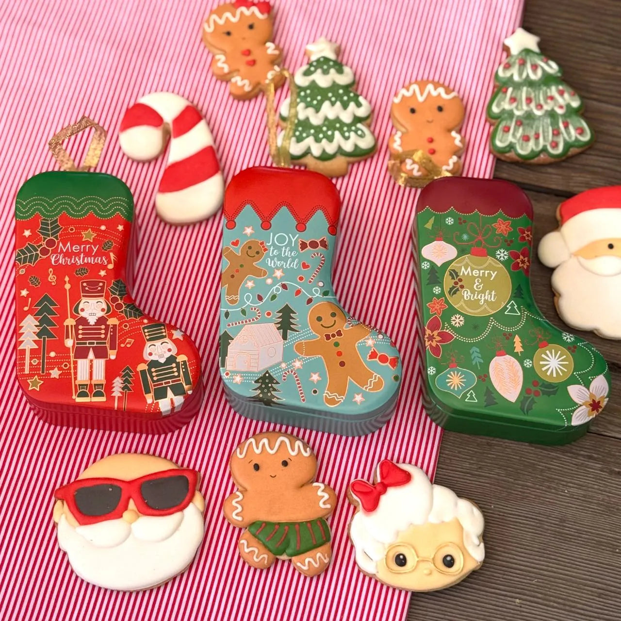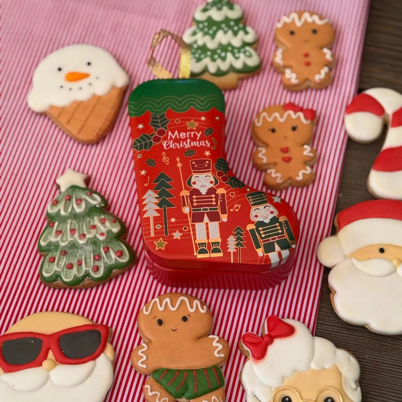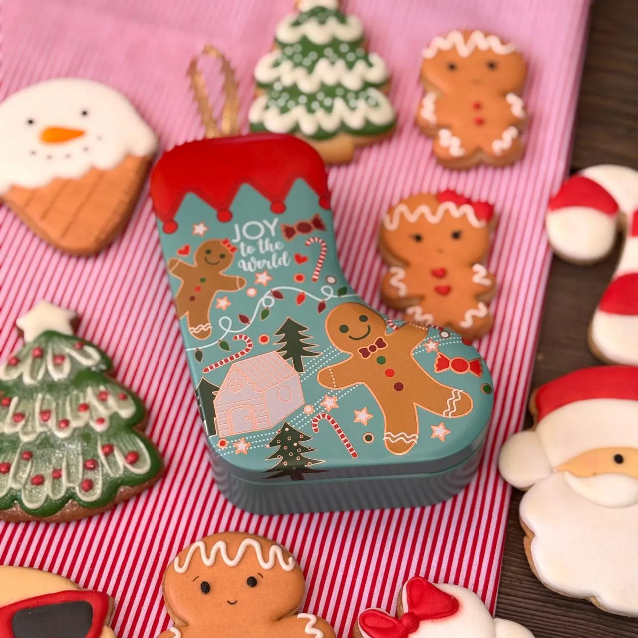 • Encantadora caja con forma de bota de Navidad para guardar tus galletas