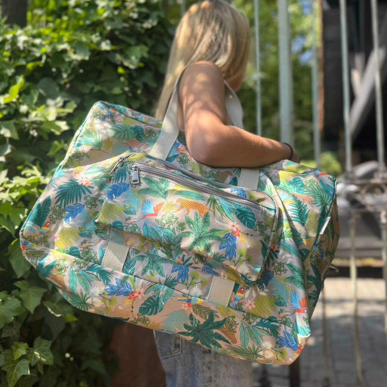 Descubre nuestro lindo Bolso viaje XL. Su porte lo hace ideal para guardar todas las cosas que necesites para tu viaje o una escapada el fin de semana. Tiene por fuera un mini compartimiento para que guardes cosas pequeñas e importantes para tener a mano. Cuenta demás con cierre y tiras largas por si te lo quieres colgar. Este bolso esta disponible en varios diseños, revísalos en el selector y elige el que más te guste.