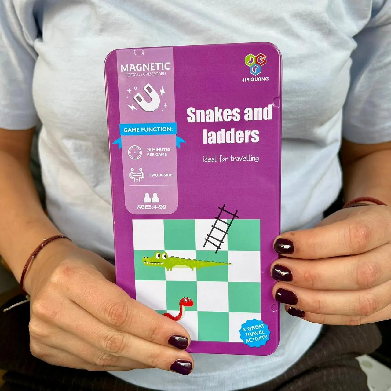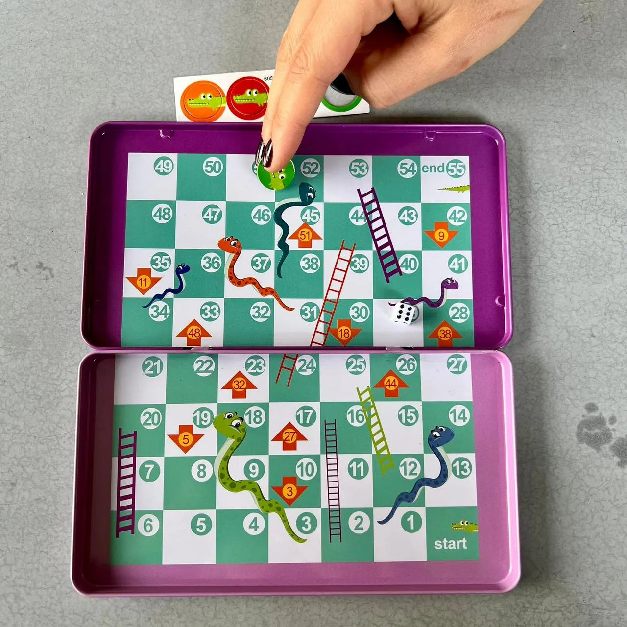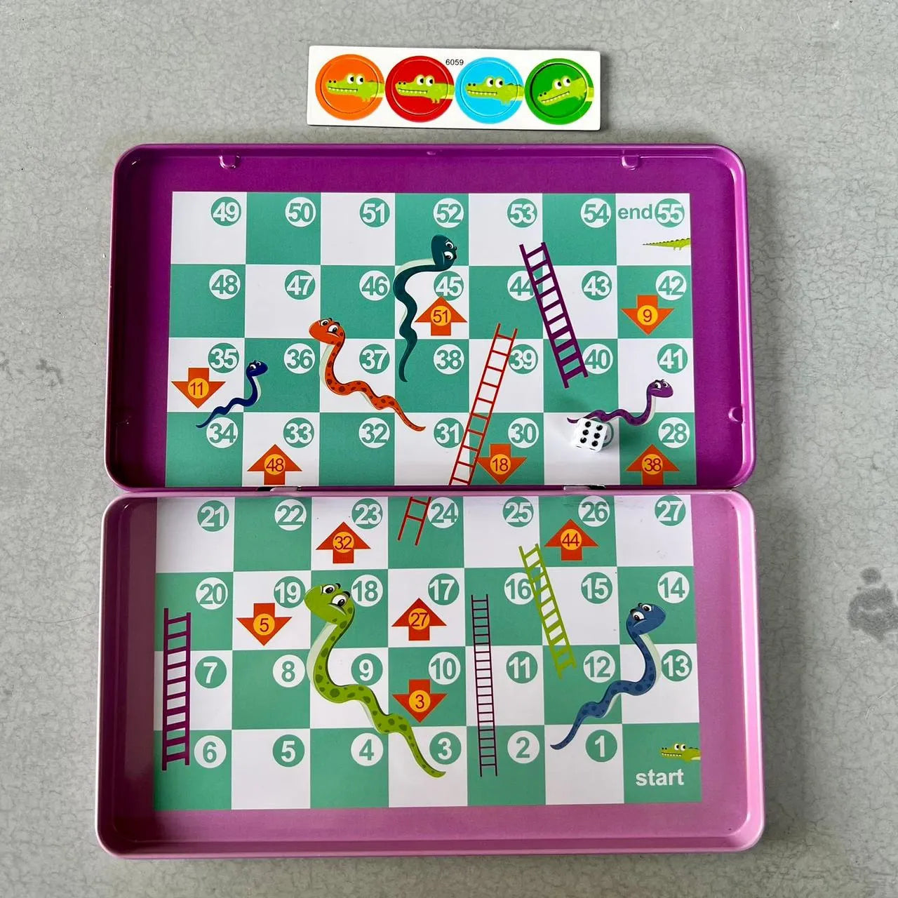 Escaleras y serpientes en caja metálica para viajes